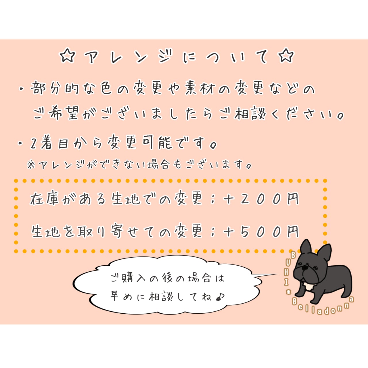 商品ページにないアレンジについて