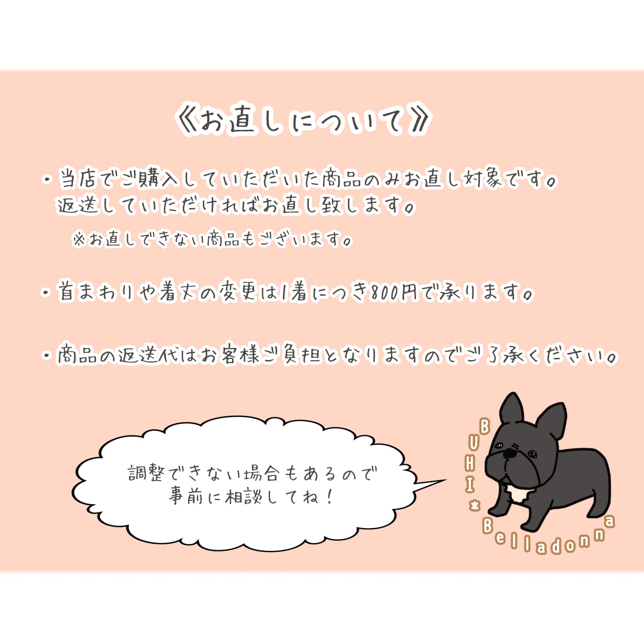 フレブルがメインですが、他犬種でも各商品ページからサイズオーダーしていただければお作り可能です。
